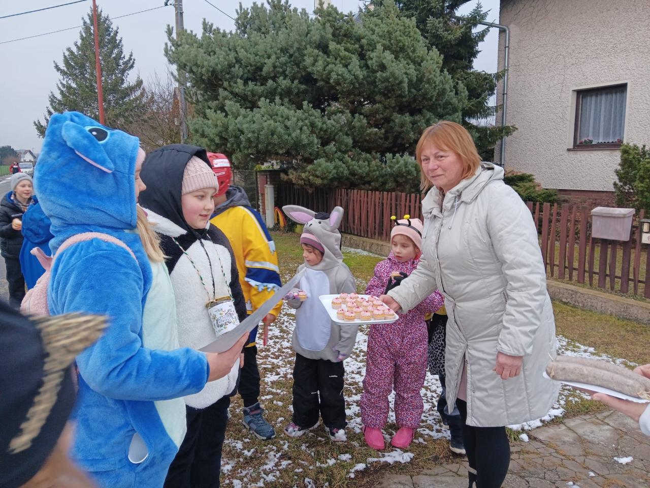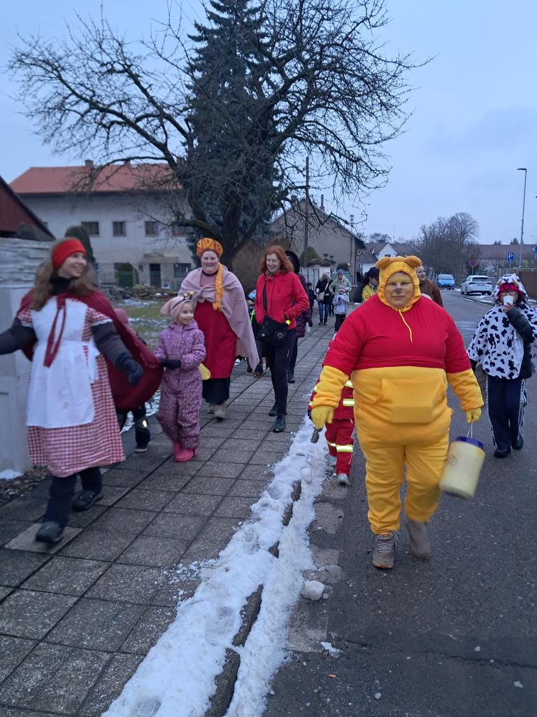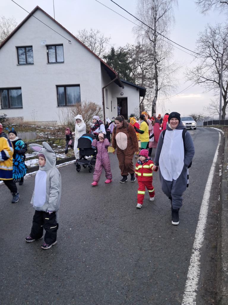 Za zpěvu a dobré nálady prošly děti dům od domu. U každého stavení popřály hospodářům vše dobré, přednesly masopustní vinš a předaly malé občerstvení v podobě jitrnic. Místní obyvatelé je za to štědře odměňovali. Nechyběly voňavé koblížky, sladkosti ani další drobné občerstvení. Úsměvy a milé přijetí provázely celý průvod.